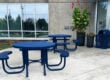 These are easy to maintain benches with easy to clean surfaces that don’t hold water, or excessive heat or cold, and don’t deform or bend. They don’t splinter like wood or fiberglass. They don’t rust or oxidize like bare steel or aluminum, and they don’t have issues with color fade or UV problems.