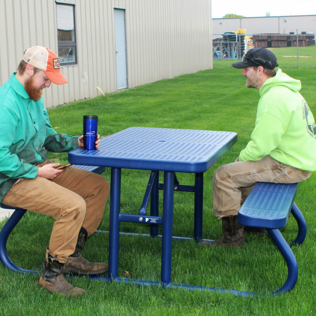 Quality construction is important for even the most basic equipment, which is why we design our tables to be incredibly stable. Thoughtful design elements, like closed pipes, ensure that wasps and other insects won’t become uninvited guests. Check out the video below of six brave Premier Polysteel staff members jumping on one side of one of our picnic tables.