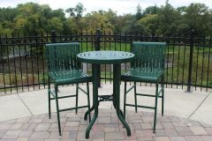 Perfect for the patio or relaxing poolside, these Commercial Patio Tables and Chairs compliment all settings. The comfortably contoured chairs feature adjustable feet. Both the patio table and the bar table have a 30 inch diameter surface. The durability of these products is evident in the weight of each piece. Wind, rain, and salty sea air are no match for Premier Polysteel commercial Patio Tables and Chairs! Rather, their strength and totally poly-vinyl coated surface allows them to withstand any environmental factor.